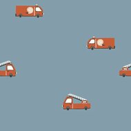 Jursie poplin katoen brandweer autos KicKenStoffen Jursie poplin katoen brandweerautos KicKenStoffen blauw (jeans) rood wit Brandweerauto poplin katoen (op=op)