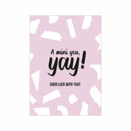 A mini you! YAY! Good luck with that. Dit is typisch zo’n kaartje voor vriendinnen met humor. Want fantastisch zo’n mini-me. Maar er zitten misschien ook wel wat uitdagingen aan?