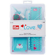Deze starter set van Prym Love is ideaal voor iedereen die wil beginnen met naaiprojecten. De set is gemaakt van hoogwaardig kunststof en bevat 2 niveaus waarin spullen opgeborgen kunnen worden. De set bevat alle basis accessoires die nodig zijn voor het starten van een naaiavontuur, namelijk een schaar, verschillende naalden, magnetisch speldenkussen met glaskopspelden, speldenkussen in de vorm van een tomaat, tornmesje, liniaal, markeerpotlood en stofclips. De set is ook super leuk om cadeau te geven.