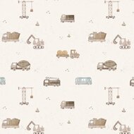 BEEBSpoplin Bouw voertuigen van KicKenStoffen bouwvoertuigen natural poplin met taupe wafelkatoen - kickenstoffen bouwvoertuigen natural poplin met linnen wafelkatoen - kickenstoffen BEEBS werkvoertuigen beige van KicKenStoffen wit (natural) beige cacao taupe Werk Bouwvoertuigen digitale poplin katoen (op=op)