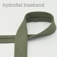 Hydrofiel biasband (ook wel bekend als moeseline biaisband), dit maakt een lakentje, swaddle of hydrofiele doek of omslagdoek helemaal af. Maar is ook handig voor het afwerken van een babynestje of badjasje bijvoorbeeld.