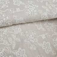 Deze geborduurde hydrofiel, ook wel broderie hydrofiel genaamd, is van een mooie kwaliteit en beige kleur. Deze katoenen (natuurlijke vezel) heeft een aangenaam draagcomfort en is luchtig. Deze broderiestof is niet alleen geschikt voor het naaien van kleding (zowel voor de kleintjes als voor uzelf). Deze stof is ook geschikt als beddengoed, voor een wiegbekleding en de babyuitzet. Heel mooi namelijk voor een babynestje of omslagdoek bijvoorbeeld.