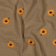 beige yellow green sunflowers embroidery double gauze