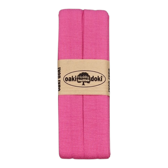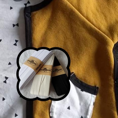 Rekbaar biasband – ideaal voor babyuitzet én kleding Dit rekbare biasband (ook wel jersey biaisband genoemd) is perfect voor het mooi afwerken van zowel kledingstukken als babyspullen. Denk aan een babynestje, omslagdoek, badcape of een tricot shirtje. Dankzij de stretch volgt het band soepel de rondingen van je naaiproject. De brede vouw aan de achterkant maakt het verwerken eenvoudig en zorgt voor een nette, duurzame afwerking. Het biasband is van Europese productie, afkomstig van het merk Oaki Doki, en voorzien van het OEKO-TEX® keurmerk.