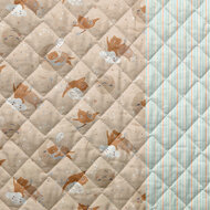 Deze gevoerde katoen bestaat uit twee lagen katoenen stof met daartussen een zachte tussenlaag van wattine. De stof is licht doorgestikt, waardoor een subtiele structuur ontstaat en het geheel prettig aanvoelt – warm, maar toch soepel.
