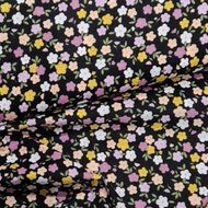 black lilac pink yellow violet olive Flowers cotton babycord fabric