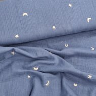 blauw (jeans) taupe goud Maan en Sterren broderie hydrofiel