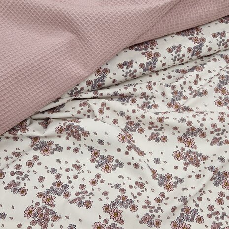 Bloembladeren poplin KicKenStoffen - BEEBSstofjes bloemen rib en lila ribtricots leuke set gemaakt door nenniekids - stoffen kickenstoffen Bloembladeren poplin met oud roze licht wafelstof KicKenStoffen Bloembladeren poplin KicKenStoffen wit (off white) lavendel blauw roze Bloembladeren - digitaal poplin katoen (op=op)