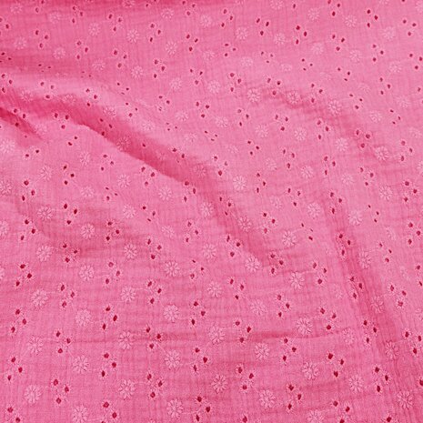 Deze hydrofiele broderie stof heeft een frisse en opvallende uitstraling, waardoor het ideaal zijn voor kleding en accessoires in plaats van de traditionele babyuitzet. Denk bijvoorbeeld aan een truitje van zachte sweatstof met bijpassende broderiemouwen. De stof is aan beide zijden mooi en de bloemetjes hebben kleine openingen, wat zorgt voor een speels effect.