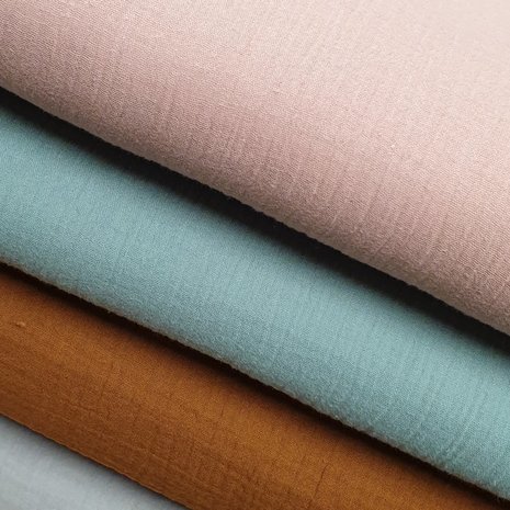 Dikke Hydrofiele Stof is een drielaagse stof met als eigenschappen ademend, luchtig, soepel, zacht, goed absorberend en natuurlijk huidvriendelijk voor de baby. Vroeger werd hydrofiele stof alleen gebruikt voor luiers. Maar tegenwoordig is de hydrofiele stof in veel items terug te zien waaronder kleding (voor zowel de kleintjes als voor onszelf), de babyuitzet. Bijvoorbeeld voor het naaien van een wiegbekleding, commodemandjes, aankleedkussenhoes, omslagdoek. De structuur van de stof heeft een gekreukelde patroon, super handig, want strijken is daarom niet nodig. Deze hydrofiel is een laagje dikker dan de dubbellaagse variant, hierdoor leent de stof zich perfect ook voor onder andere een zomerdeken, babynestje en blouse of jurk. Andere benamingen voor hydrofiel zijn: mousseline - musselin - muslin - mouseline - tetra - gauze - double gauze Vergeet niet de nodige fournituren te bestellen, zoals bijpassend naaigaren of lockgaren.