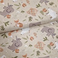 Deze hippe katoenen stof van Swessie Design is echt een eigentijds! Met speelse illustraties van vosjes, eekhoorns, mammoeten, beren en schildpadden heeft deze serie een unieke en eigentijdse uitstraling. De stevige kwaliteit katoen maakt de stof veelzijdig in gebruik en nét even anders dan anders.