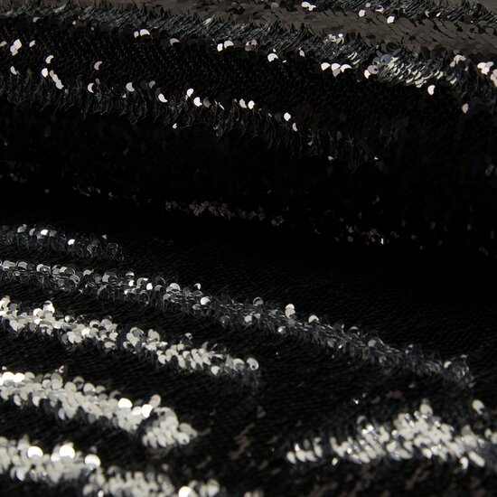 Op zoek naar een speciale feestelijke stof, van de beste kwaliteit. Dan is deze groen-zwarte pailletten stof precies wat u zoekt. Een tule ondergrond heel dik 'belegd' met fonkelende oud roze Lovertjes. De stof is licht rekbaar door de tule ondergrond, dus perfect voor het naaien van glamoureuze kleding zoals galajurken, rokjes, danskleding of topjes. De stof prikt eigenlijk niet, maar mocht u de stof willen voeren is een bamboe tricot een aanrader, rekbaar, dun en zwierig én super zacht. Deze stof is ook geweldig om te decoreren, zo ziet uw feestlocatie en fantastisch uit als u bijvoorbeeld de wanden bekleed met deze stof. Of een leuke loper op een tafel. Siergordijnen maken de feestzaal helemaal af.