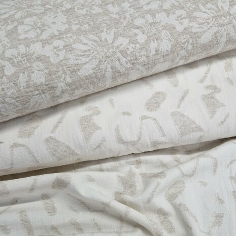 Deze lichte en luchtige jacquardstof in een subtiele beige (natural) mêlee tint heeft een modern abstract patroon. Dankzij de combinatie van katoen en linnen voelt de stof heerlijk aan, is ademend en duurzaam. Perfect voor projecten waarbij een verfijnde en luchtige uitstraling gewenst is.