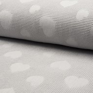 Wafel, wafelkatoen, wafeltjes stof, wafel jacquard Onmisbaar in de babyuitzet! 100% katoen en worden voller na een keer gewassen te zijn. Deze hartjes zijn volledig ingeweven in de wafelstof, een totaal nieuw product. Let op deze wafel krimt ca. 10% met wassen. Deze stoffen worden veel gebruikt voor badjassen, beddengoed (lakentjes, zomer dekentjes, wiegbekleding), omslagdoeken, baby badjasjes, bekleding gebreid baby dekentje, tutdoekjes, aankleedkussens, slabbetjes, spuugdoekjes, speelkleed, commode mandje, boxkleed, zonnekap wandelwagen of maxicosi maar ook veel gebruikt voor sauna doeken en pestemals. Natuurlijk zijn deze stoffen voorzien van het Oekotex keurmerk.