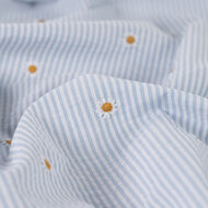 seersucker katoen donker blauw streepjes met geborduurde madeliefjes