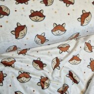 Zachter dan zacht in onze collectie is deze Knuffel fleece ook wel Wellness fleece genoemd. Deze stof heeft een kant met schattige vos koppies en een andere kant leuke stipjes. Deze zachte knuffelige-stof wordt gebruikt voor het naaien van bijvoorbeeld een omslagdoek, bank of auto dekentje, baby deken, reisdeken, jasje of vestje, speelkleed, knuffeltjes, badjassen kortom het wodt gebruikt voor van alles. Vergeet u niet de nodige fournituren te bestellen, zoals bijpassend naaigaren of lockgaren?