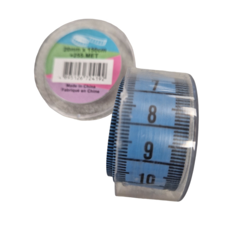 Een handig, flexibel, kleurrijk en voordelig meetlint van 150cm lang (150 cm / 60") verpakt in een handig bewaar potje.