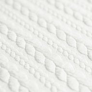Deze prachtige gebreide kabelstof is jacquard geweven en heeft een luxueuze uitstraling. De stof is niet alleen heerlijk zacht en soepel, maar ook rekbaar, waardoor hij perfect is voor allerlei naaiprojecten. Denk aan schattige babydekentjes, comfortabele kleding en warme sjaals. Ook voor een stijlvolle omslagdoek of een knusse teddy cape is deze stof een geweldige keuze. Dankzij de hoogwaardige kwaliteit en het mooie kabelpatroon creëert u moeiteloos iets bijzonders!