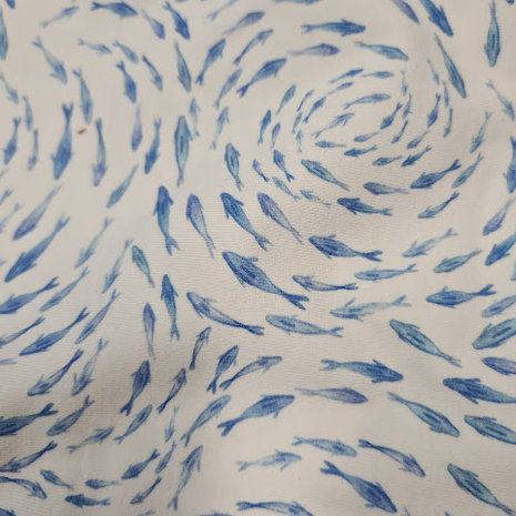 wit (off white) blauw school vissen visjes - digitaal tricot