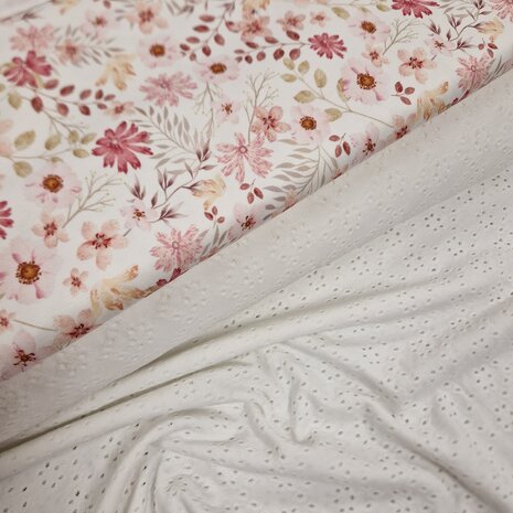 Deze broderie tricotstof is heerlijk zacht en rekbaar.