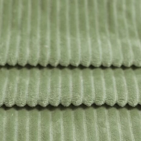 Deze zachte knuffelige-stof heeft aan een kant een mooie brede rib en de achterkant is ook gewoon netjes en mooi, dus geen enkelzijdige stof. De stof heeft een brede ribbel en deze de streep loopt in de lengte. Heerlijk voor kleding (bijvoorbeeld een sweater). Maar zeker ook geschikt voor de babyuitzet (denk dan aan een dekentje, teddycape, commodemandjes en ga zo maar door. En natuurlijk perfect voor home decoration, maar van deze stof leuke kussens of een zachte en warme bankplaid/woondeken.