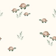 Biologische tricot met schildpadjes – zacht en lief organic cotton jerseys - kickenstoffen kinder kleding gemaakt van de schildpadjes tricot biologisch van kickenstoffen biologische tricots van KicKenStoffen -Jursie  white (off white) Pastel Turtles organic jersey