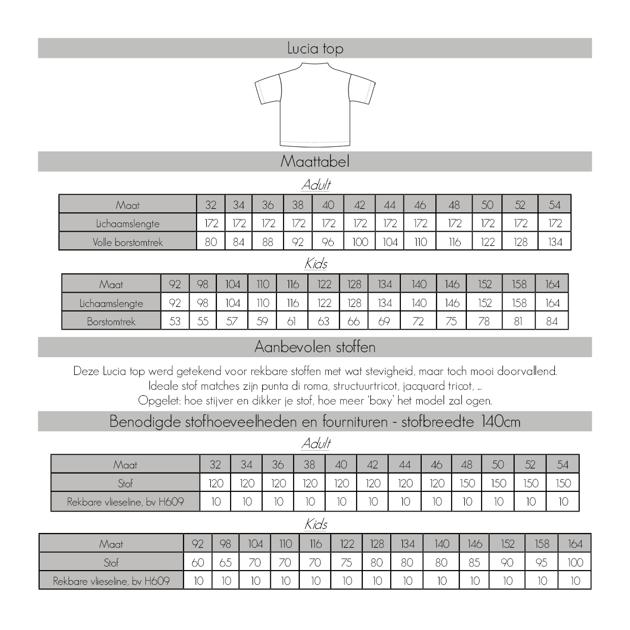 Over onze Lucia top voor dames & tieners & kindjes: De gratis top is ontworpen voor rekbare stoffen met een vleugje stevigheid, zodat ze mooi valt maar toch comfortabel meebeweegt. Perfecte keuzes zijn bijvoorbeeld punta di milano, french terry, structuurtricot, gevoerde tricot, ottoman rib of jacquardtricot.