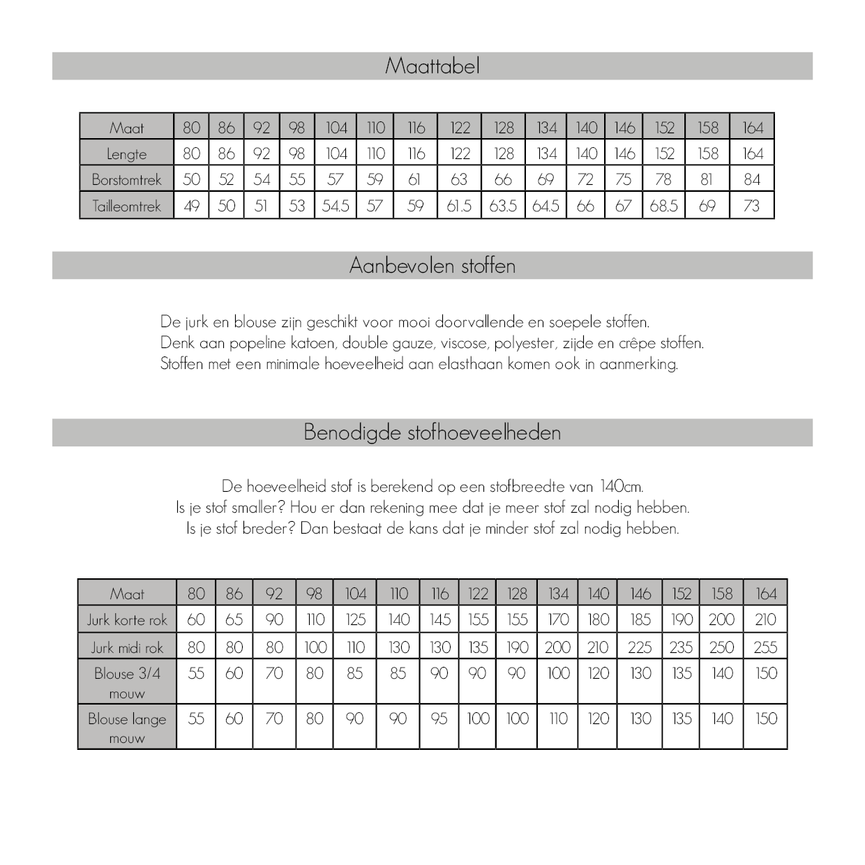 -het patroon op 2 gevouwen A0 pagina’s in maten 80, 86, 92, 98, 104, 110, 116, 122, 128, 134, 140, 146, 152, 158 en 164
