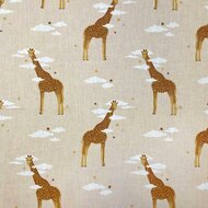 Swessie design giraf perzik  van KicKenStoffen Swessie luchtballon en giraf stof met camel wafel van KicKenStoffen Swessie luchtballon en giraffen katoenen stof van KicKenStoffen Swessie design giraf perzik  van KicKenStoffen nog 2m - perzik (licht) wit camel giraf in de wolken katoen (op=op)