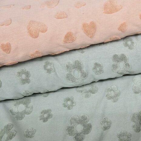nude roze badstoftricot met hartjes - KicKenStoffen