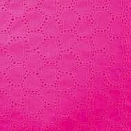 hartjes broderie katoen fuchsia roze KicKenStoffen Qjutie broderie hartjes katoen KicKenStoffen broderie katoen jurkje xmas broderie hartjes katoen KicKenStoffen roze (fuchsia) Hartjes met gaatjes broderie katoen (op=op)