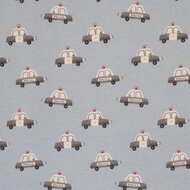 Baby Rib Tricot Soft – Politieautootjes op Oudblauwe Ondergrond