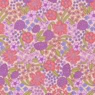roze (licht) violet lila oranje rood groen Retro Bloemen poplin katoen