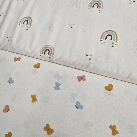 Deze regenboogstof is 100% katoen de stof wordt gebruikt voor het naaien van bijvoorbeeld een babynestje, dekbedovertrek, tafeltent, tipitent of gordijnen op kinderkamers. Maar ook heel vaak voor kleding, de voering van een tas, patchwork of een vlaggenlijn. Vergeet niet de nodige fournituren te bestellen, zoals bijpassend naaigaren of lockgaren. Natuurlijk zijn deze stoffen voorzien van het Oekotex keurmerk.