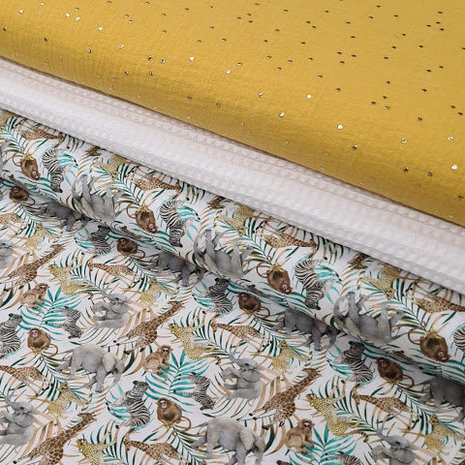 Deze stof is 100% katoen - poplin (heel soepel en voelt zacht op de huid) Trendy en hip zijn deze dierenprints, ideaal dus voor de kinderkamer van ‘nu’. Zo wordt het veel gebruikt voor het naaien van bijvoorbeeld een babynest, babyuitzet, wiegbekleding, boxkleed, speelkleed, tafeltent, tipitent, dekbed-overtrek, babylakens of gordijnen op kinderkamers. Maar ook heel vaak voor kleding, de voering van een tas, patchwork of een vlaggenlijn. Natuurlijk zijn deze stoffen voorzien van het Oekotex keurmerk.