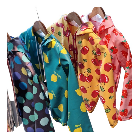 Kleurrijke regenjasstoffen in de kindercollectie van KicKenStoffen. Deze waterdichte stof is ook leuk voor een tafelkleed trouwens of het bekleden van een kinderstoel. De stof voelt fijn en glad aan en valt soepel. Gebruik eventueel waterdichte naadtape om ook naden waterdicht te maken en het is beter naaiclips te gebruiken dan spelden (i.v.m. gaatjes). Deze stof is niet geschikt om te wassen in een wasmachine, maar u kunt de stof gewoon afnemen met een schone natte doek.