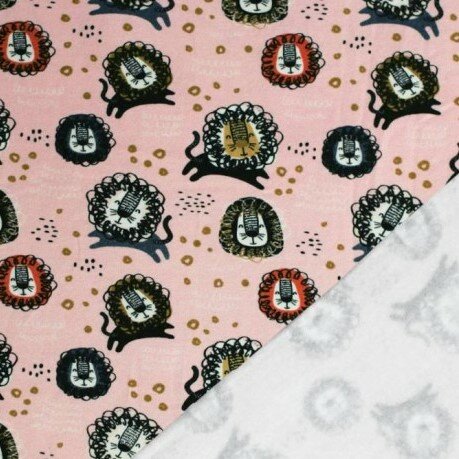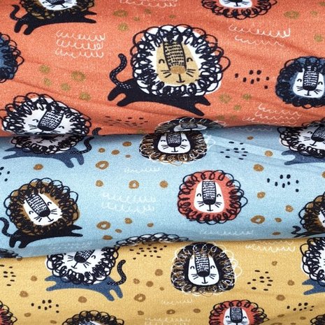 nog 70 cm - terracotta camel grijsblauw zwart leeuwtjes - biologische french terry (op=op)