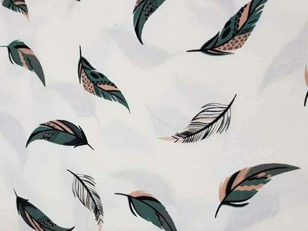 wit poeder roze, grijs & groen veer - Yuma poplin katoen