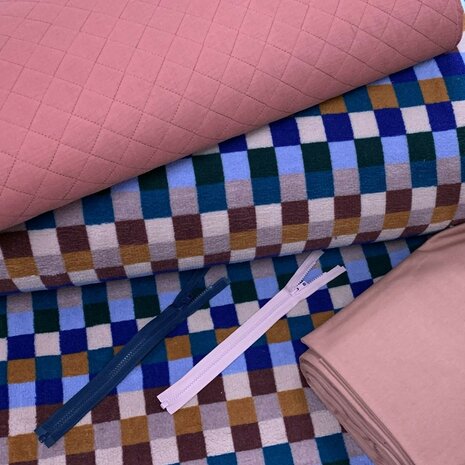 vintage roze Deelbare Bloktand Vislon Rits YKK 30cm teddy blokken met rozeterracotta hydrofiel gevoerd en boordstof - KicKenStoffen 30CM VISLON ZIPPERS YKK DIVISIBLE vintage pink Block tooth Divisible Zipper YKK nylon 30cm