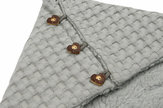 Naaipatroon voetenzak, inclusief duidelijke werkbeschrijving. In deze heerlijk warme voetenzak kunt u uw baby lekker mee naar buiten nemen. De voering is gemaakt van teddystof of borg en gedecoreerd met knopen op de punt en bij de omslag.