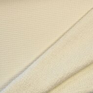 badstofwafel ecru - KicKenStoffen badstofwafel sfeerfoto - KicKenStoffen badstofwafel ecru en bamboe katoen fleece ecru - KicKenStoffen badstofwafel ecru en broderie hydrofiel bloem - KicKenStoffen mini mini vintage groen met berceau off white hemel dekentje wafelbadstof @droomzolderwiegjesvantoen wafelbadstof - kickenstoffen kleur ecru wafelbadstof Swessie design van KicKenStoffen wit (ecru) WafelBadstof