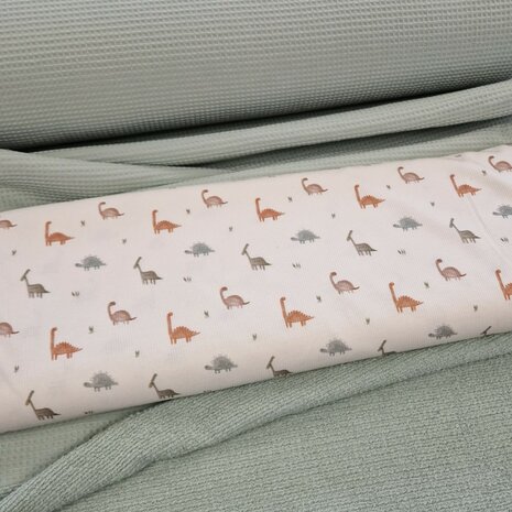 badstofwafel vintage groen - KicKenStoffen badstof wafel vintage groen met dino ribtricot soft - KicKenStoffen badstofwafel sfeer - KicKenStoffen badstof wafel vintage groen - KicKenStoffen mini mini vintage groen met berceau off white hemel dekentje wafelbadstof @droomzolderwiegjesvantoen wafelbadstof - kickenstoffen vintage green waffle terry fabric