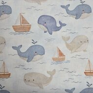 BEEBS katoenen stof – walvissen print blauwbeige – Oeko-Tex wit beige blauw Walvissen udi digitale katoen *S kinder katoentjes Udi Beebsstofjes van KicKenStoffen walvis digitale katoen met jeans en beige wafel 414012 wit beige blauw Walvissen udi digitale katoen *S