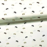 Katoenen kindertricot met autoprint. Deze single jersey veel gebruikt voor het naaien van kinderkleren, baby boxpakjes of iets leuks voor uw babyuitzet.Denk dan aan bijvoorbeeld een pyjama, wikkeldeken, nursingcover, babydeken, omslagdoek, kwijlslabbetjes, zeverdoekjes, beanies, harembroekjes (baby legging), baby cocoon, nursing cover, loop-sjaal of kleding. Natuurlijk zijn deze stoffen voorzien van het Oekotex keurmerk. Vergeet niet de nodige fournituren te bestellen, zoals bijpassend naaigaren of lockgaren.
