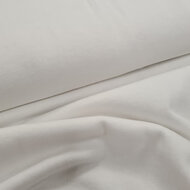 Deze extra brede flanel in wit is een zachte, soepele stof van 100% katoen, dubbelzijdig geruwd en met een gewicht van 200 gram per m². De stof voelt warm en comfortabel aan en heeft een frisse, tijdloze uitstraling.