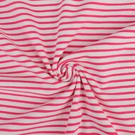 BEEBS spandextricot streepjes van kickenstoffen BEEBS effen oud fuchsia babyrib tricot SOFT met streepjes tricot fuchsia van KicKenStoffen BEEBStricot regenboogjes met streepjes tricot fuchsia van KicKenStoffen wit roze (fuchsia) streepjes strepen tricot  (op=op)