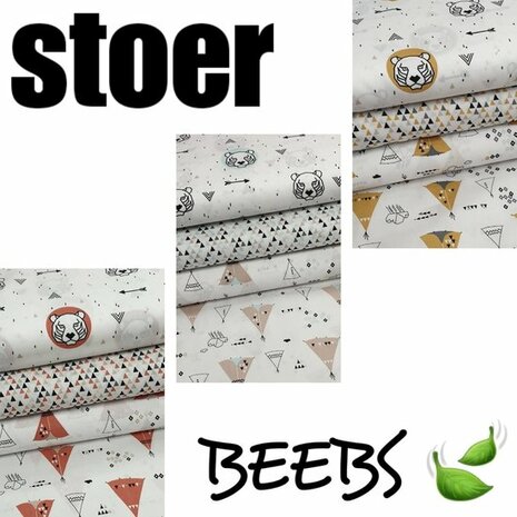 wit zwart terracotta kiezel STOER tijger pijlen poplin katoen
