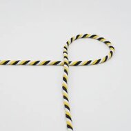 Mooi wit-zwart-geel gevlochten koord van 100% katoen. Het koord heeft een stevige, natuurlijke uitstraling en voelt zacht aan. Perfect te gebruiken als koord voor kleding, tassen, gymzakken, jasjes of decoratieve afwerkingen. Dankzij de katoenen samenstelling is het goed wasbaar en prettig om mee te werken.