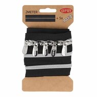 Afmeting breedte rits 6mm - 2m lang - 5 schuivers